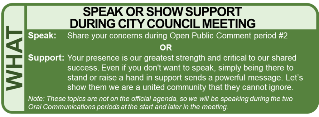 Your presence is your voice. Even if you don’t speak, showing up sends a powerful message that residents care about protecting our neighborhood’s future.